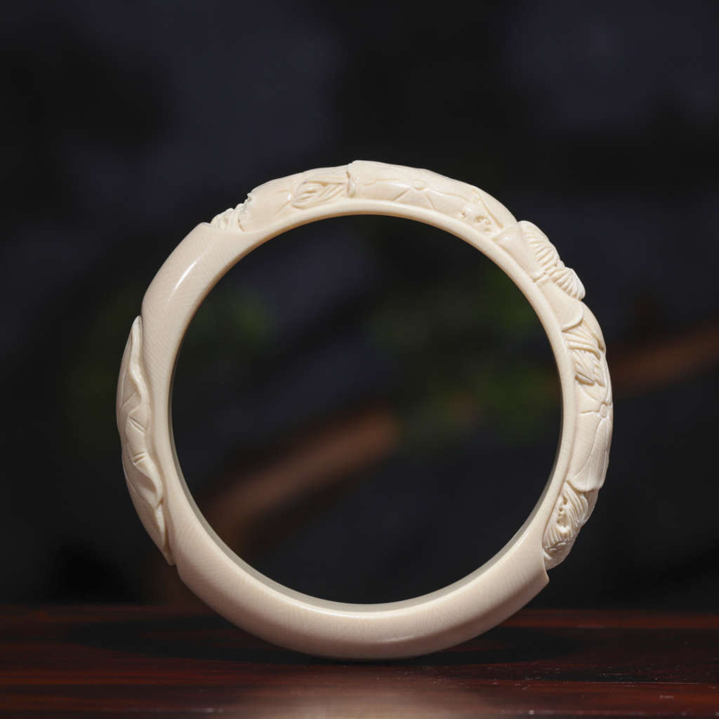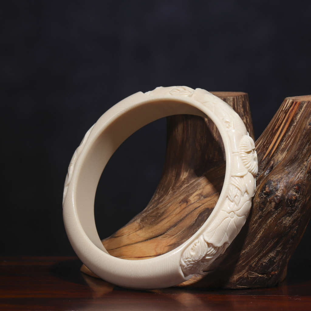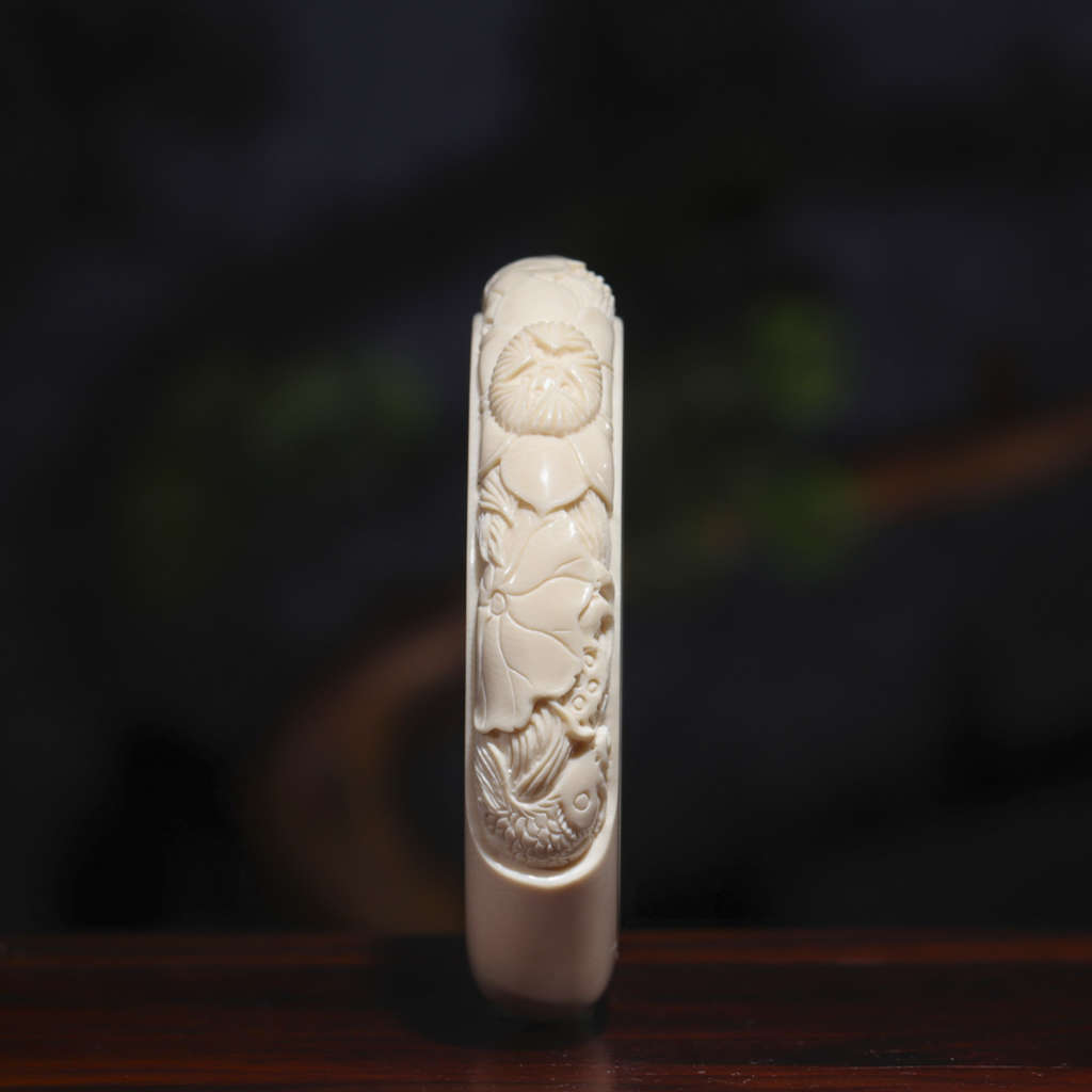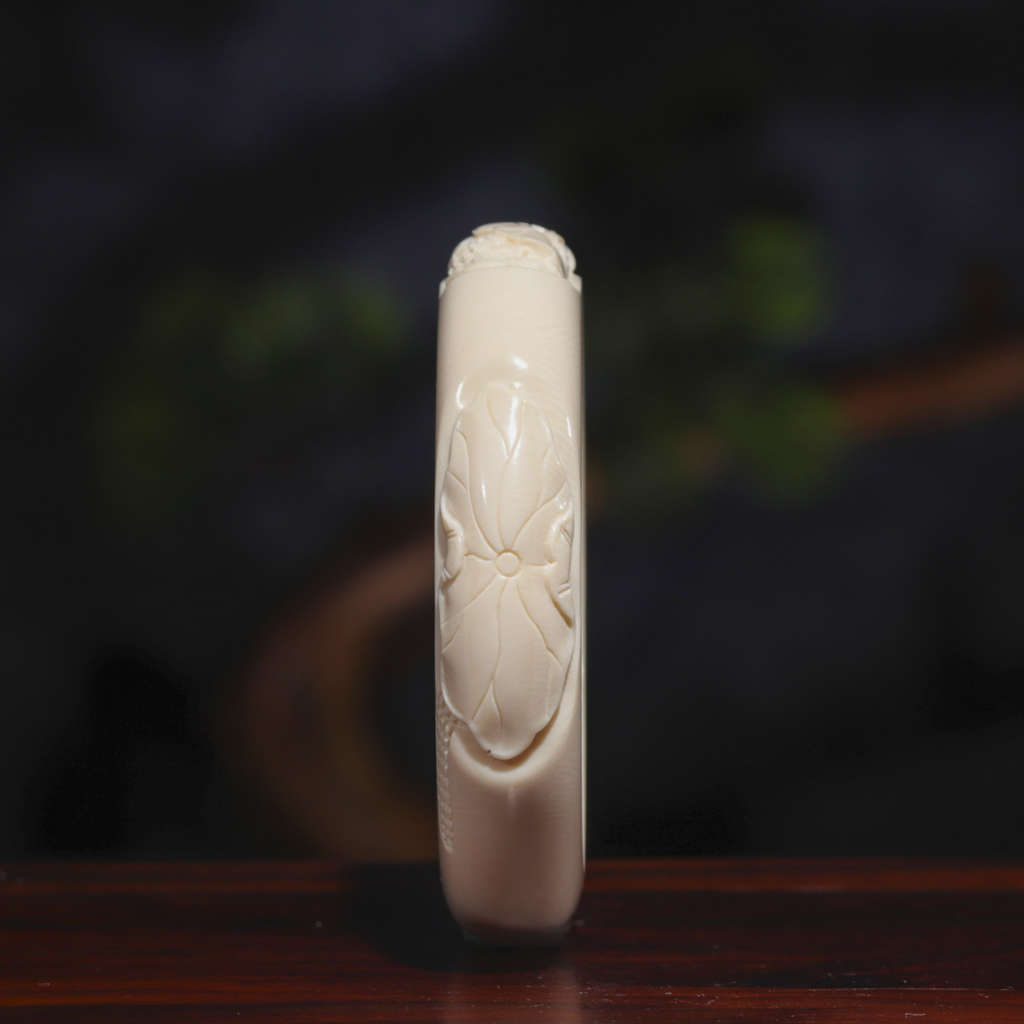 【猛犸牙雕作品】《荷花扁鐲》代表著清白、堅貞、純潔、信仰、忠貞和愛情
