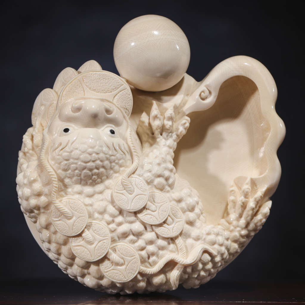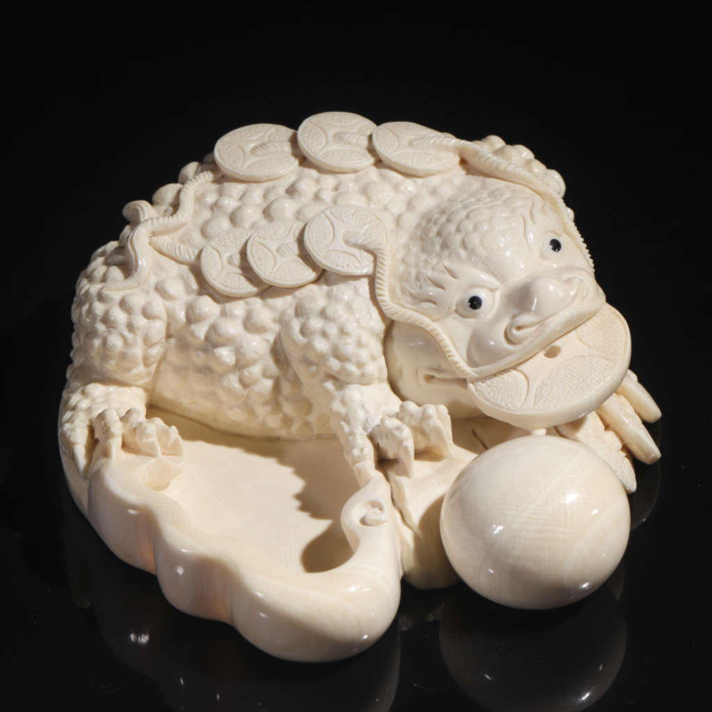 【猛犸牙雕作品】《金蟾筆洗》請只瑞蟾到宅邸 該宅的人便會飛黃騰達