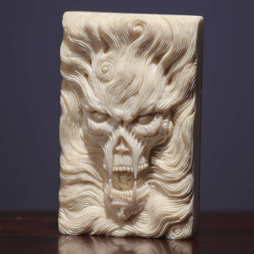 猛犸牙雕掛牌《惡靈》細(xì)節(jié)刻畫生動 神態(tài)活靈活現(xiàn) 驅(qū)邪辟兇 逢兇化吉