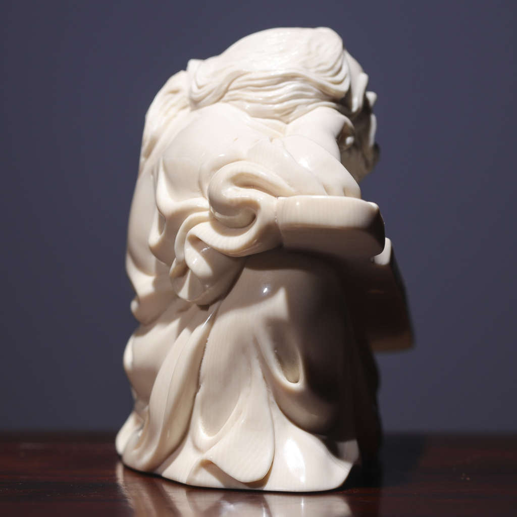 珍藏級!猛犸牙雕擺件《覓知音》,老師傅原創手作!精選猛犸白冰料,紋路飽滿,牙質水潤!大師級雕工!一曲肝腸斷,天涯何處覓知音!神態傳神,意境深遠!不失為一件難得的珍藏孤品! 尺寸:65×70×41mm, 克重:130.8g