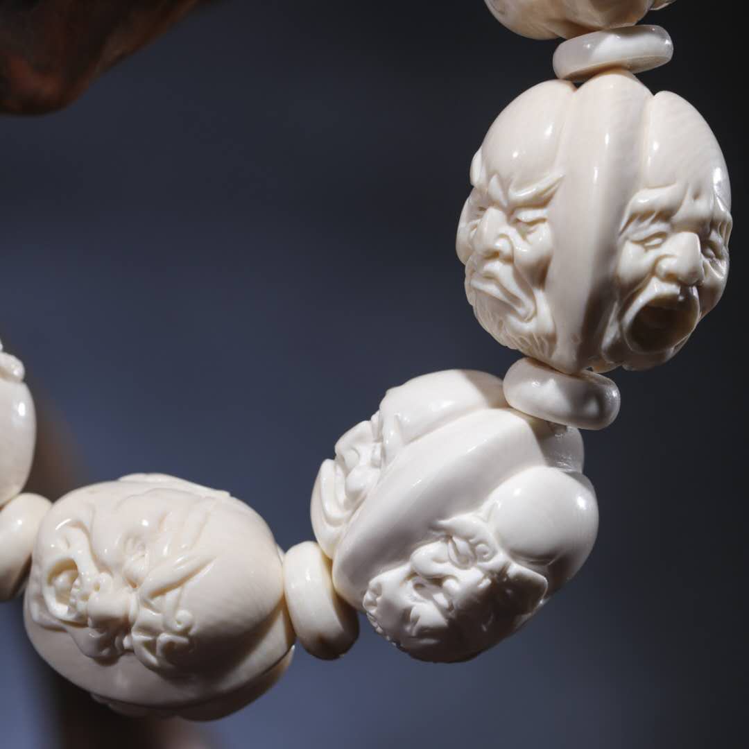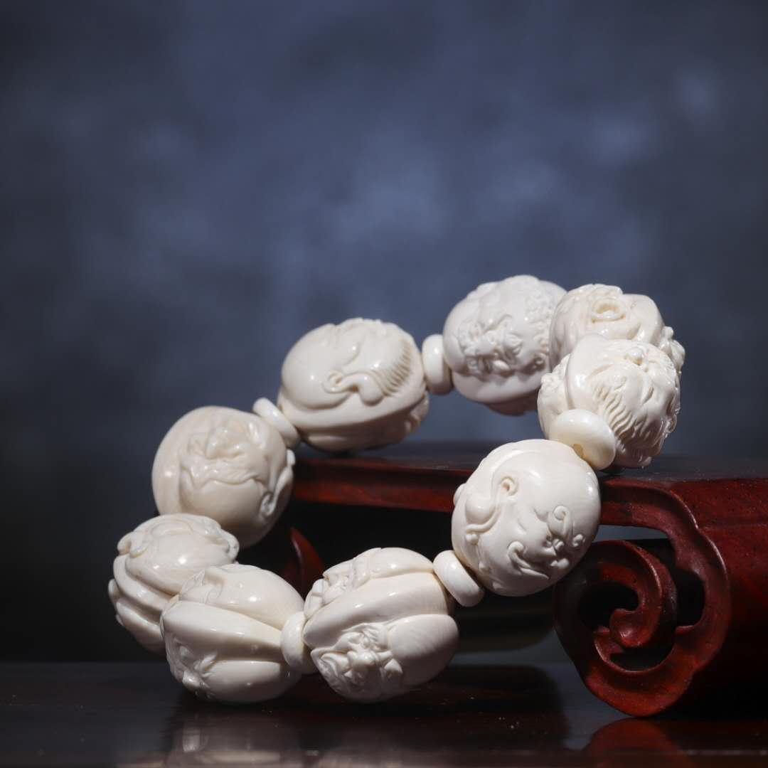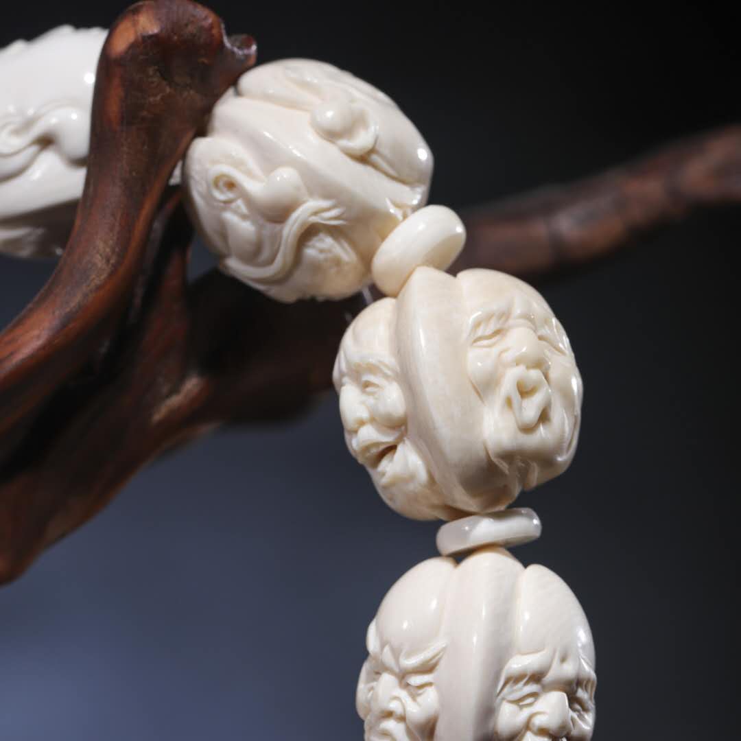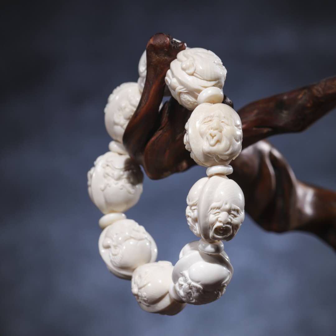 猛犸象牙《十八羅漢手串》顆顆純手工!羅漢為不壞金剛之身,能夠祛災擋煞,護佑結緣之人遇到任何苦難和災難都能化險為夷、平安度過。