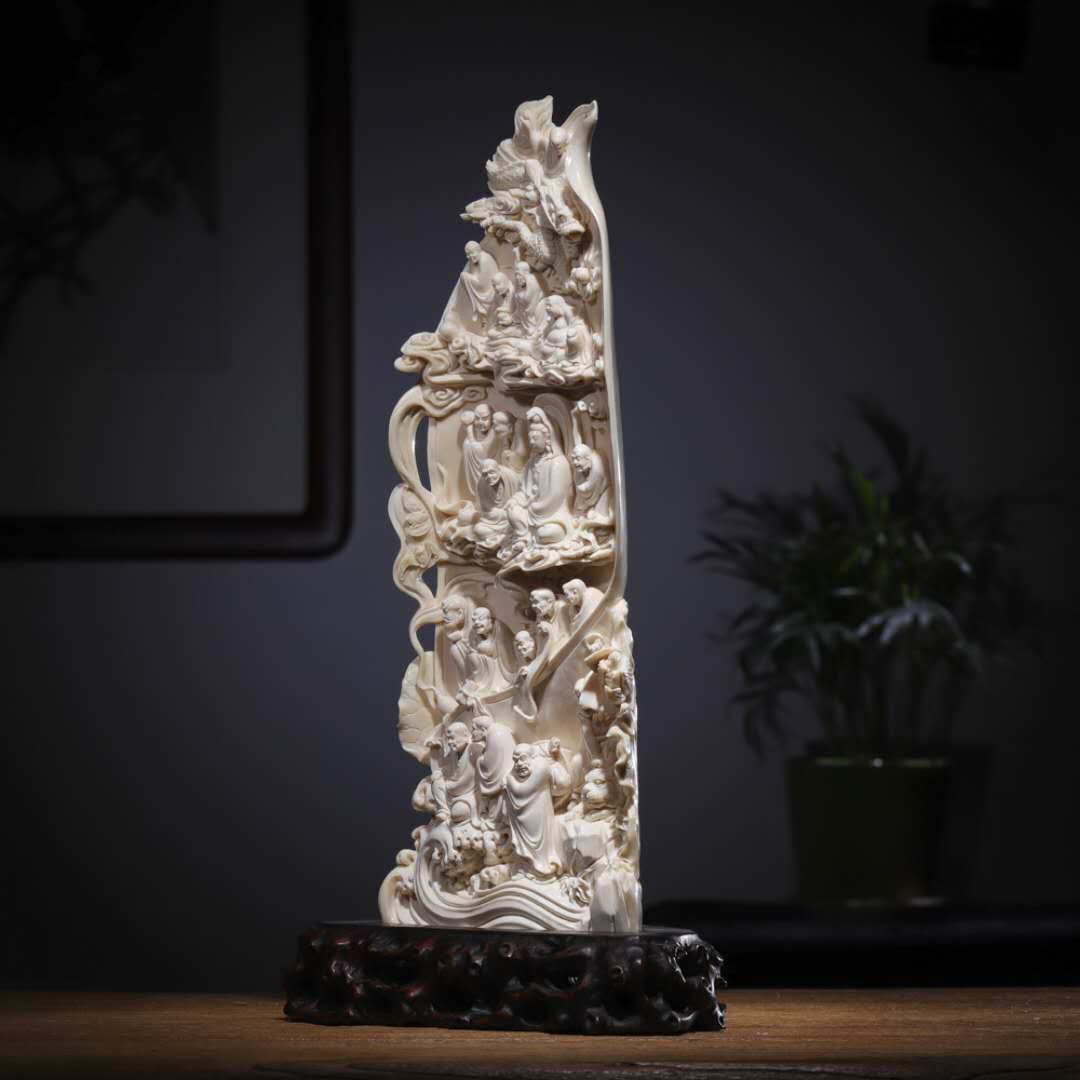 【館藏級】猛犸象牙《十八羅漢擺件》選料上乘!原創孤品!資深老師傅歷時數月手雕創作而成!鎮宅法器,護佑結緣之人遇到任何苦難和災難都能化險為夷、平安度過。
