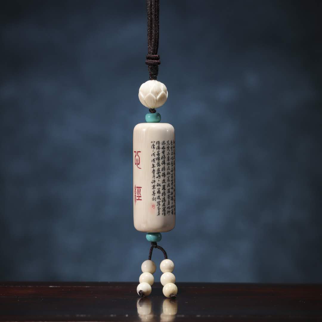 猛犸象牙《心經(jīng)桶珠》心經(jīng)是闡述大乘佛教中空和般若思想的經(jīng)典,是所有佛經(jīng)中翻譯次數(shù)最多,譯成文種最豐富,并最常被念誦的經(jīng)典。上等好料!老師傅純手工雕刻!