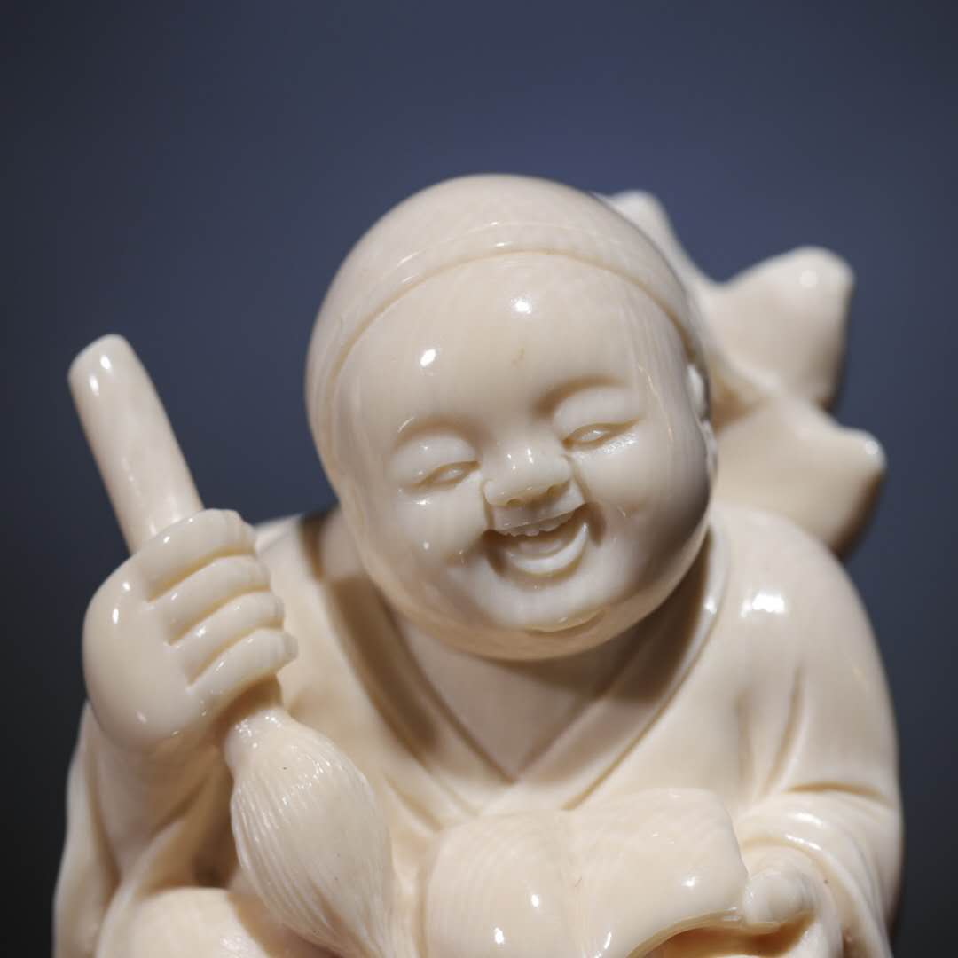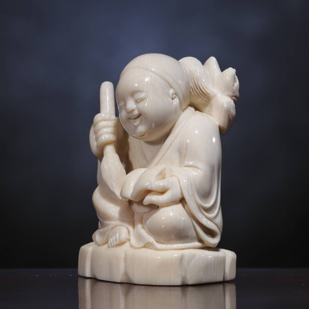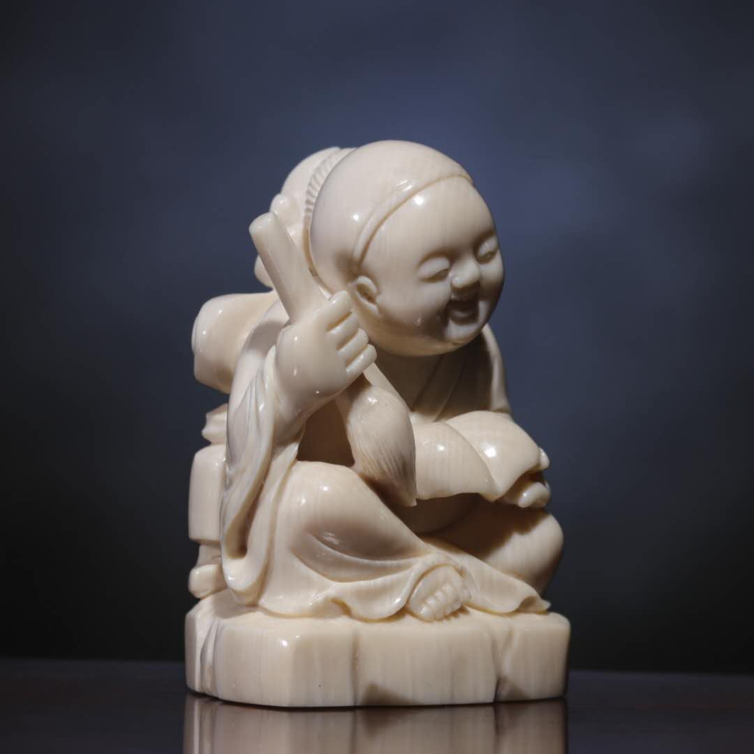 猛犸象牙《小書童》細節刻畫生動活潑,線條靈動俏皮 整個形象活靈活現 靈性十足