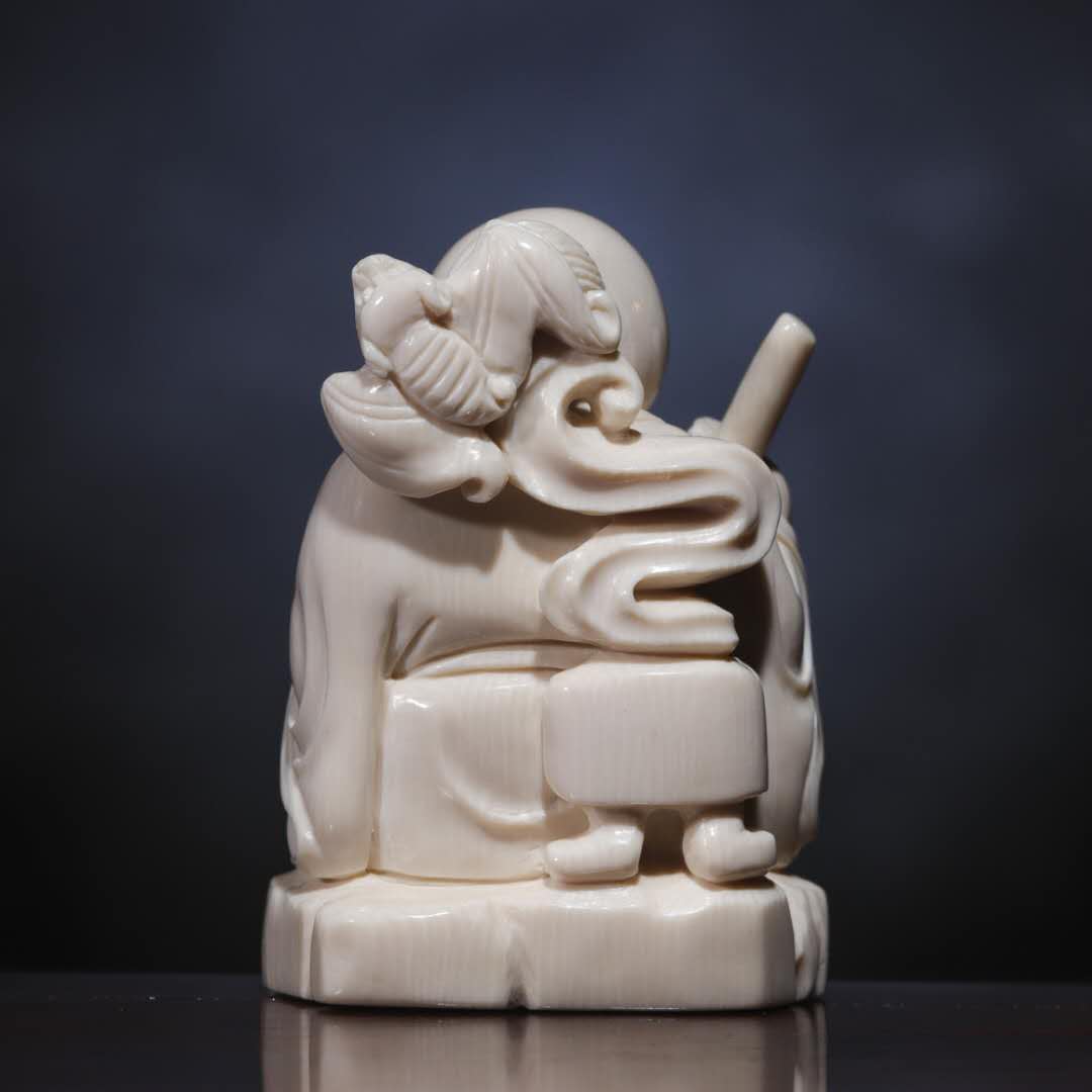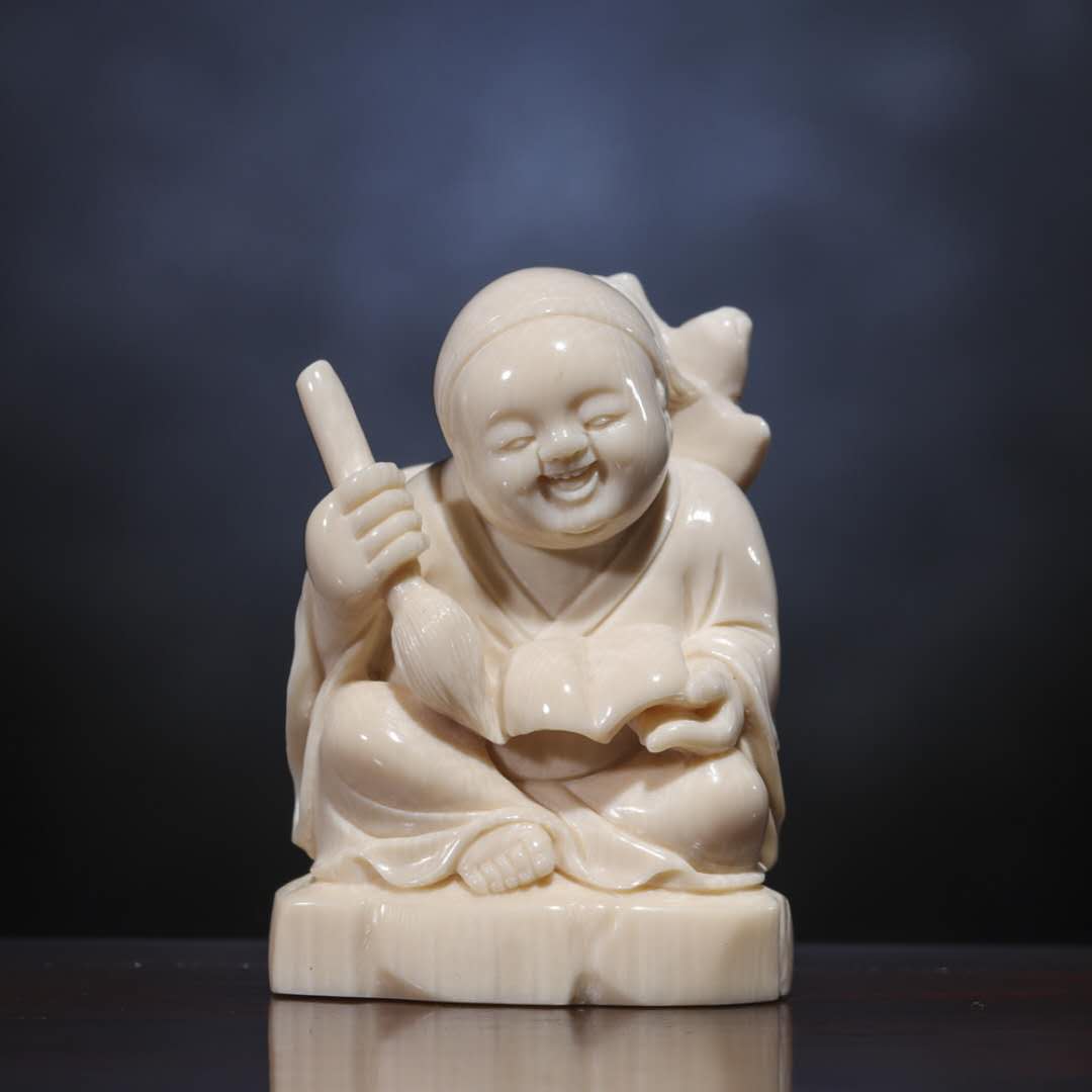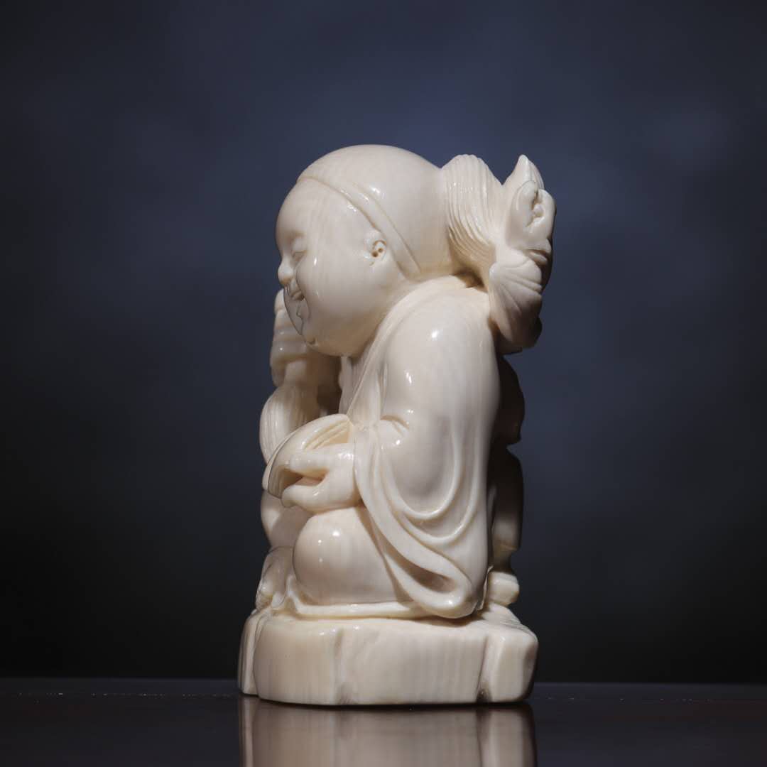 猛犸象牙《小書童》細節刻畫生動活潑,線條靈動俏皮 整個形象活靈活現 靈性十足