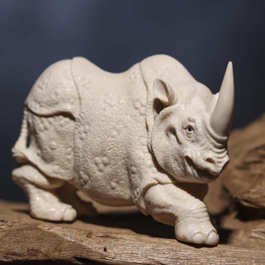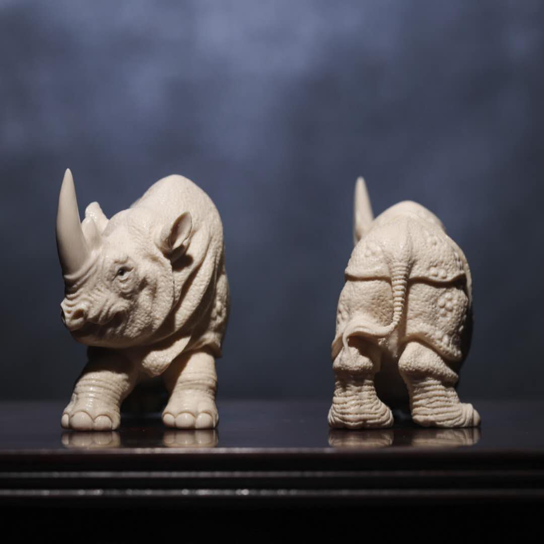 犀牛對擺 紋理清晰 大師手工 線條流暢 栩栩如生 可擺放于家中 辦公室 寓意鎮宅辟邪