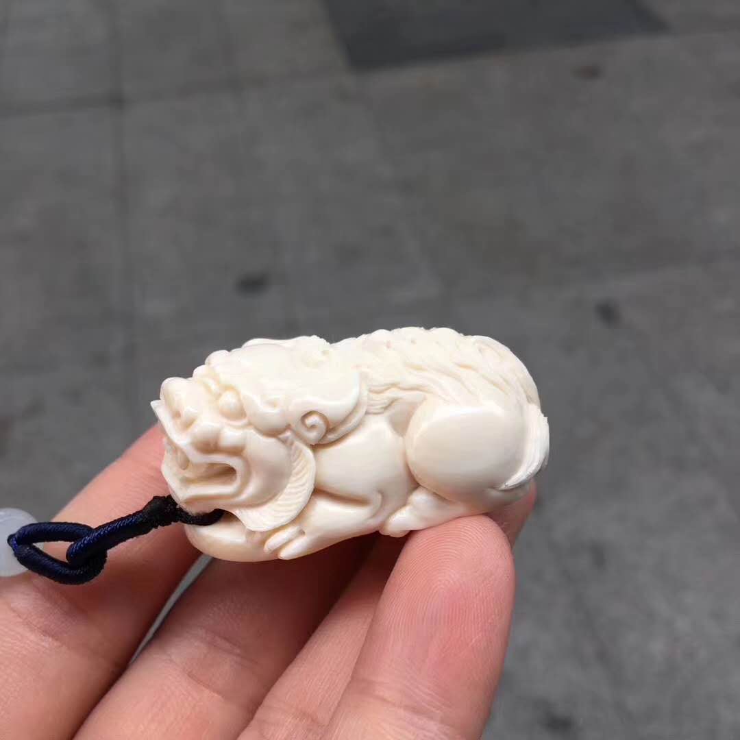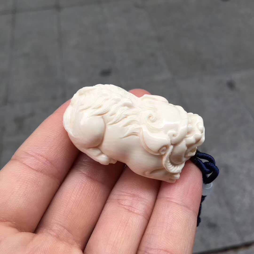 【金錢貔貅】掛件,精選頂級猛犸白冰果凍料,牙質細膩潤澤,雕工精湛,細節完美,線條飽滿柔和,雕刻生動,威風霸氣,招財進寶。尺寸42*26*19mm,凈重22g