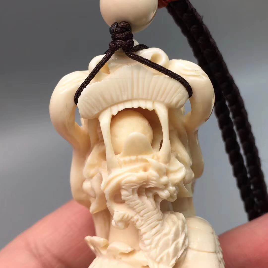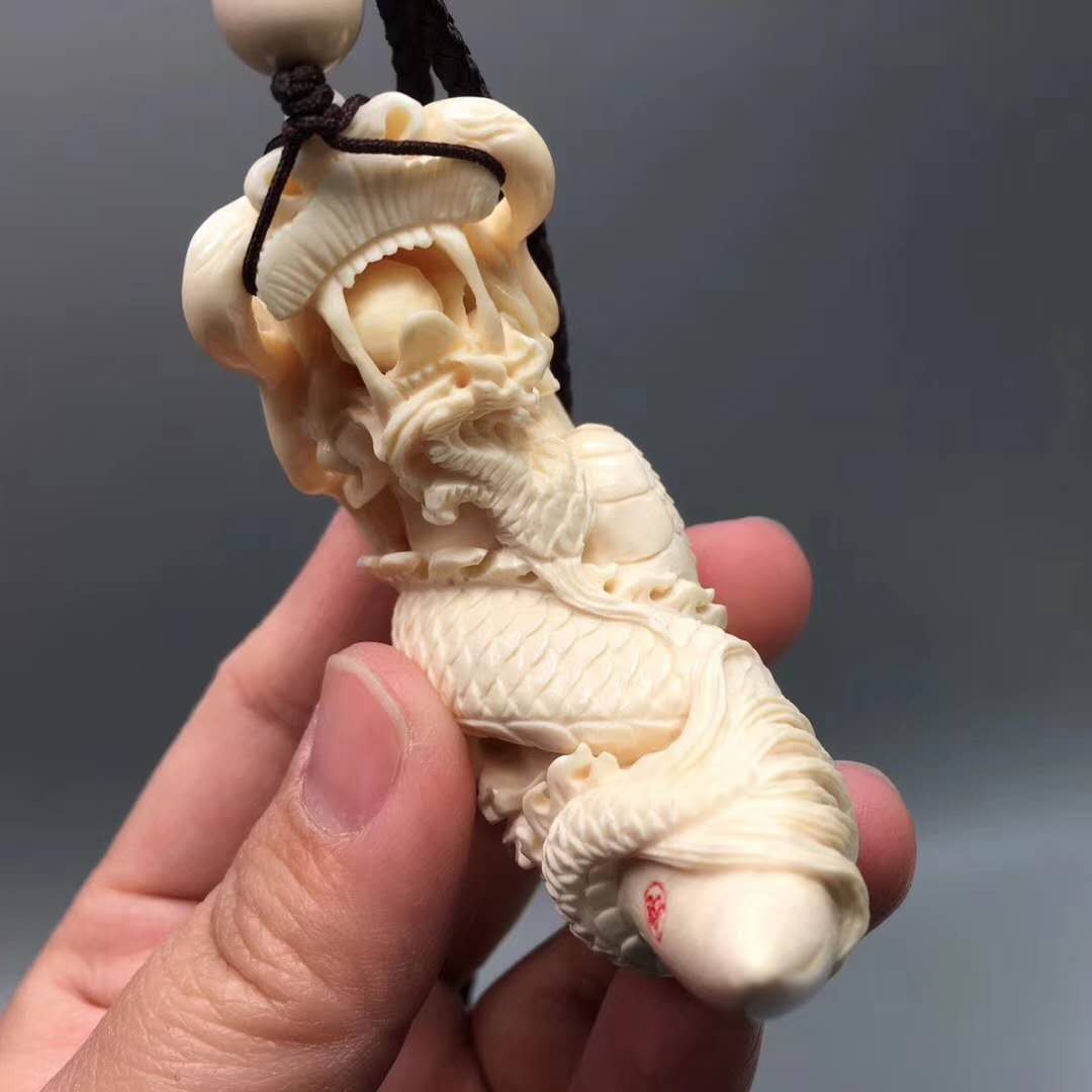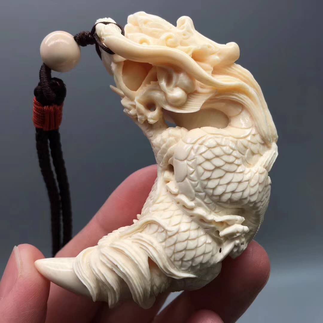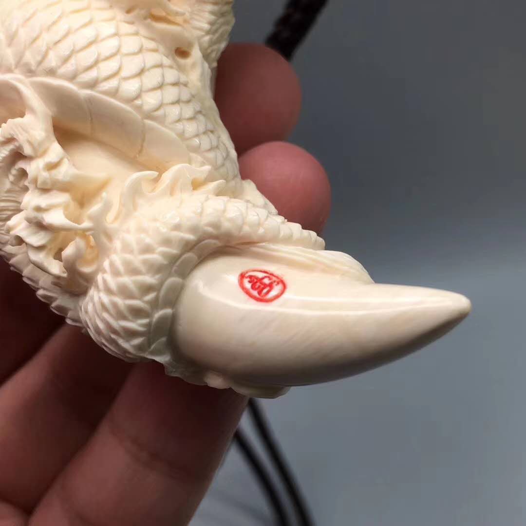 猛犸牙白冰料精工細作,蟲蟲大師純手工雕刻《盤龍牙尖》吊墜把件均可,純手工鏤空雕刻,工藝無可挑剔!細節品質完美,精琢,佩戴高端大氣,性價比極高,配送精品禮盒,尺寸70㎜×27㎜,重約51.6g