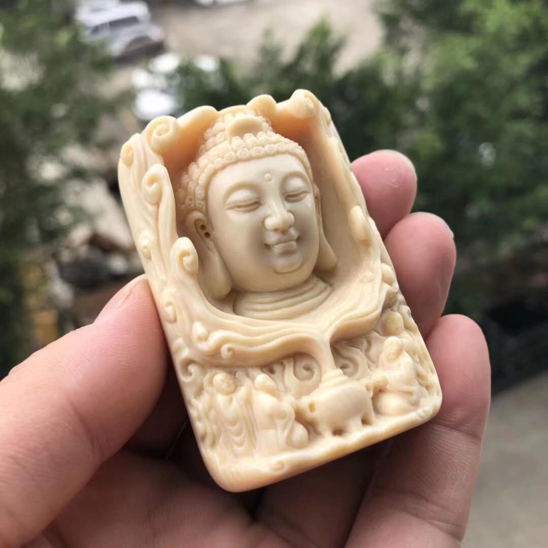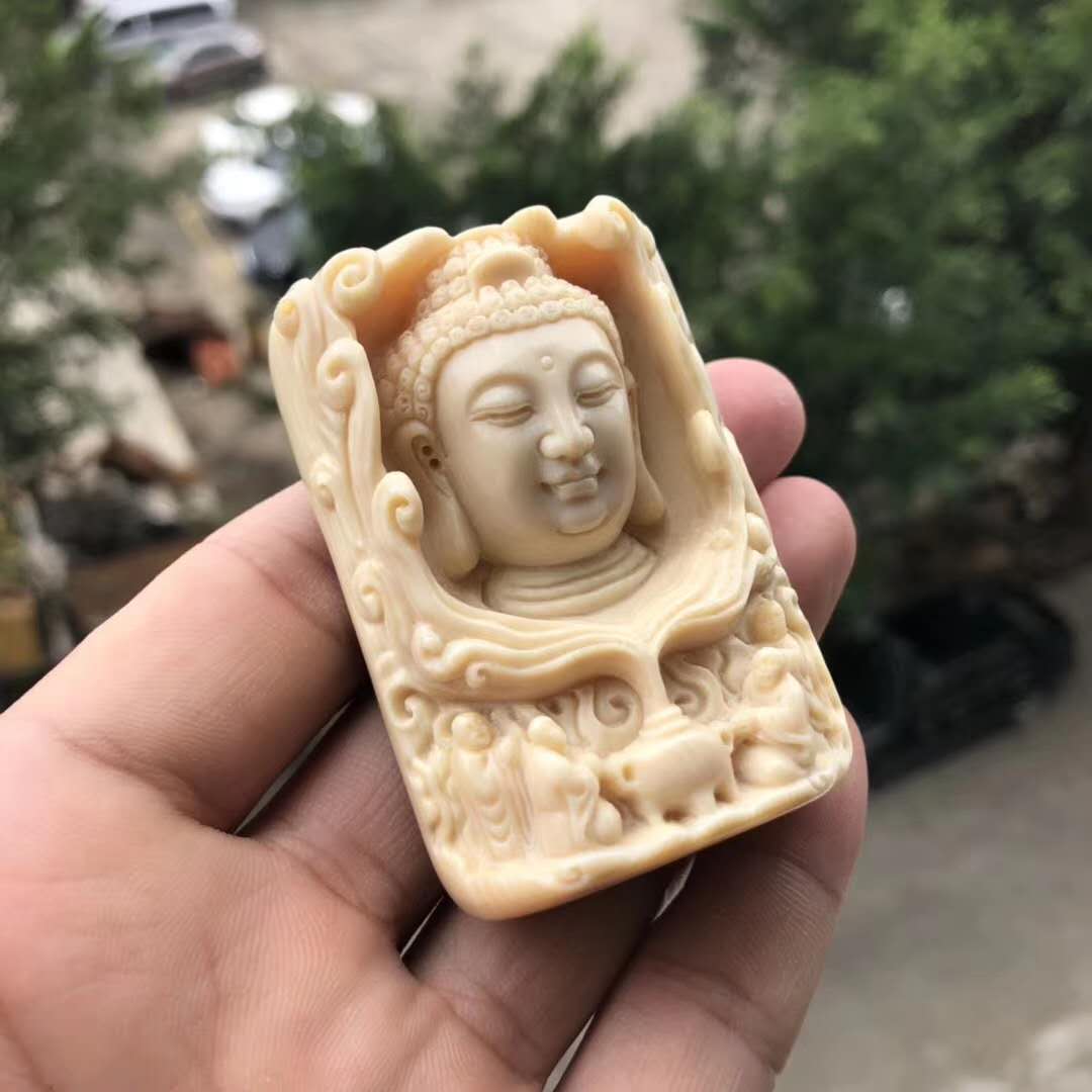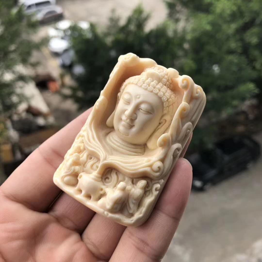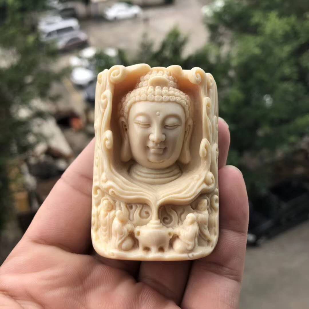 猛犸牙雕【一心向佛】東賢大師純手工精雕力作,精選頂級猛犸冰料,保留天然精美紅皮,潤澤細膩,絕美標桿級開臉工藝,佛光四溢,全新設計款,非常漂亮!尺寸63*43*23mm,重69.2g,緣詢