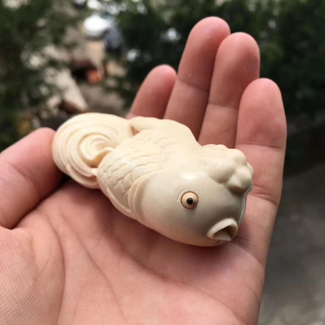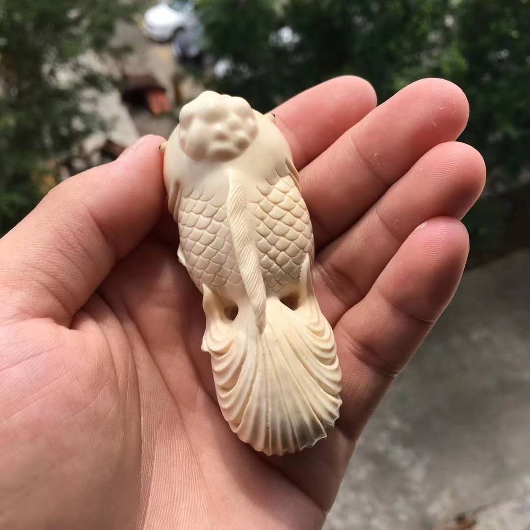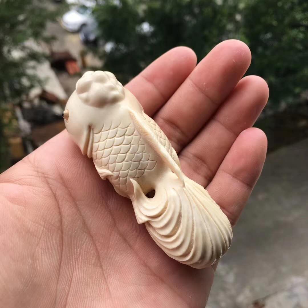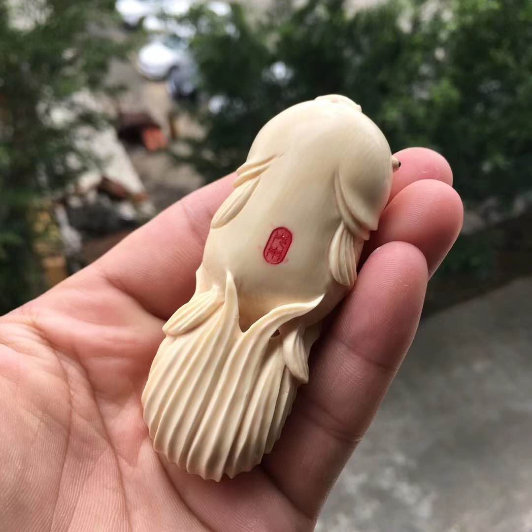 猛犸牙雕【金玉滿堂】郭先東大師作品,猛犸冰料,水潤牙心,雕工精湛,細節完美,栩栩如生之作!寓意極好、金玉滿堂連年有余,大師落款!尺寸80*31*28mm,重60.8g。緣詢