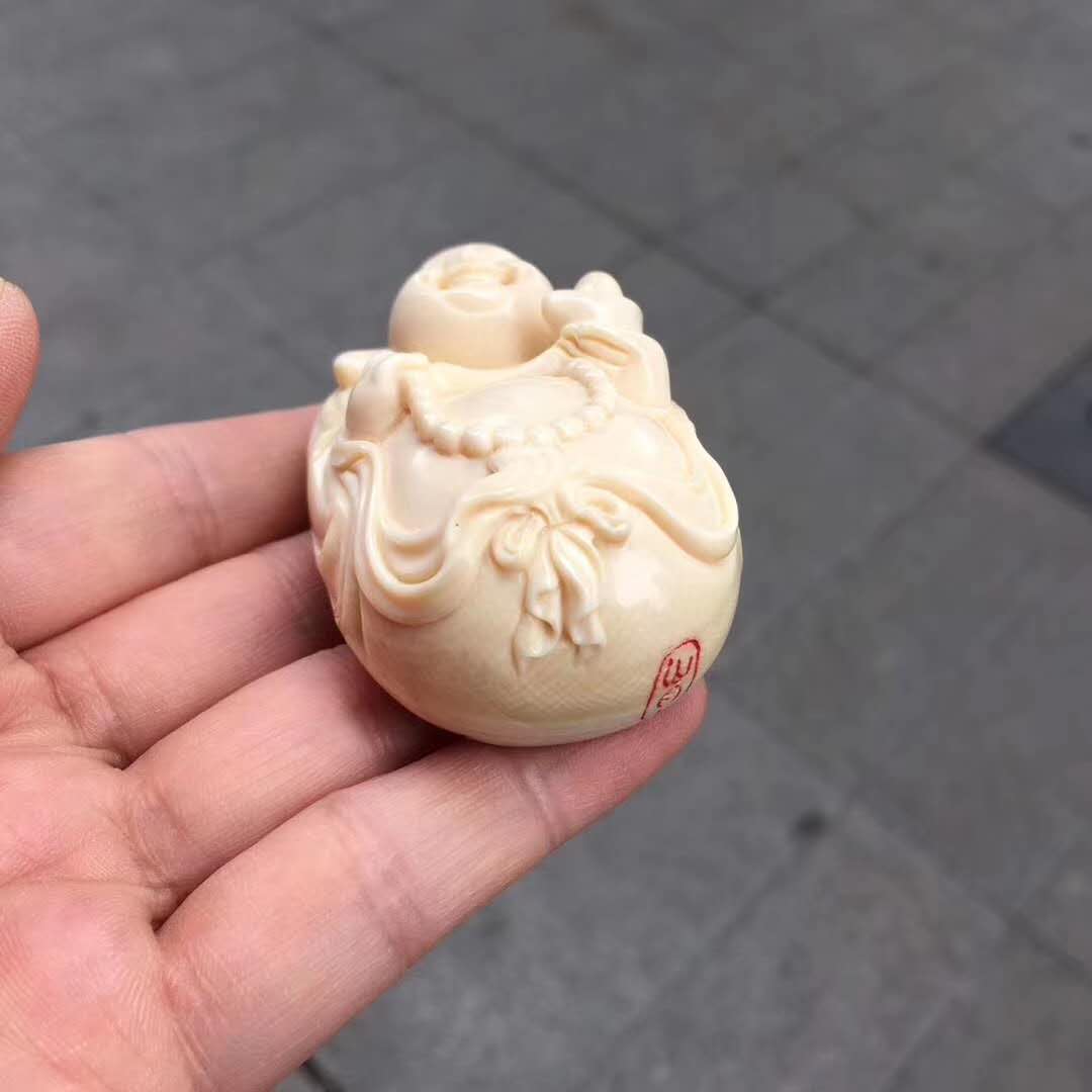 猛犸象牙【元寶彌勒佛】紋路清晰飽滿,牙質(zhì)白潤(rùn)無暇 寓意招財(cái)進(jìn)寶 事事如意