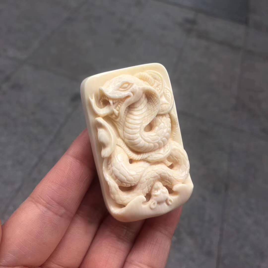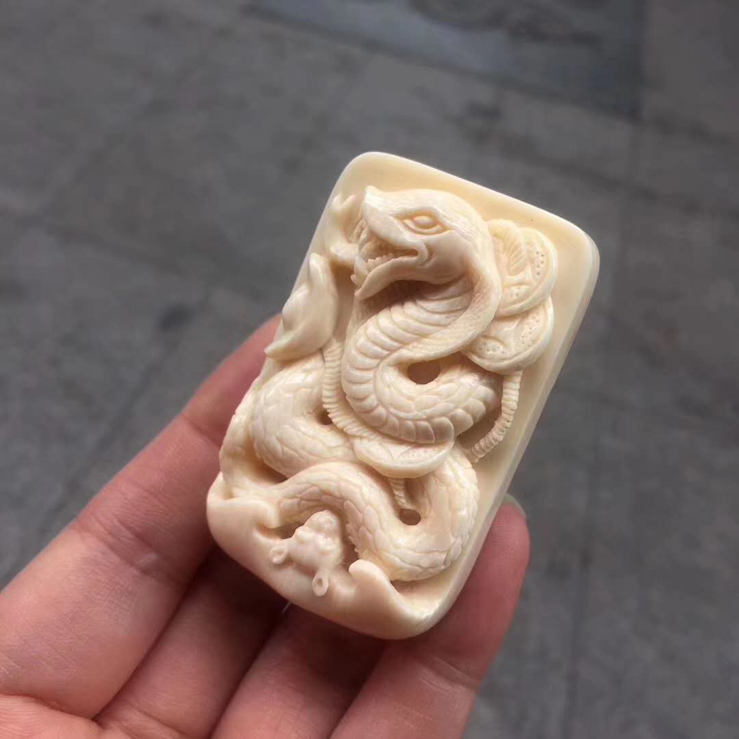 【生肖蛇】掛件,猛犸原皮冰料,大師手工雕刻,線條簡潔流暢,生動傳神,細節完美,佩戴大氣!尺寸55*34.5*17mm。重量37.2克