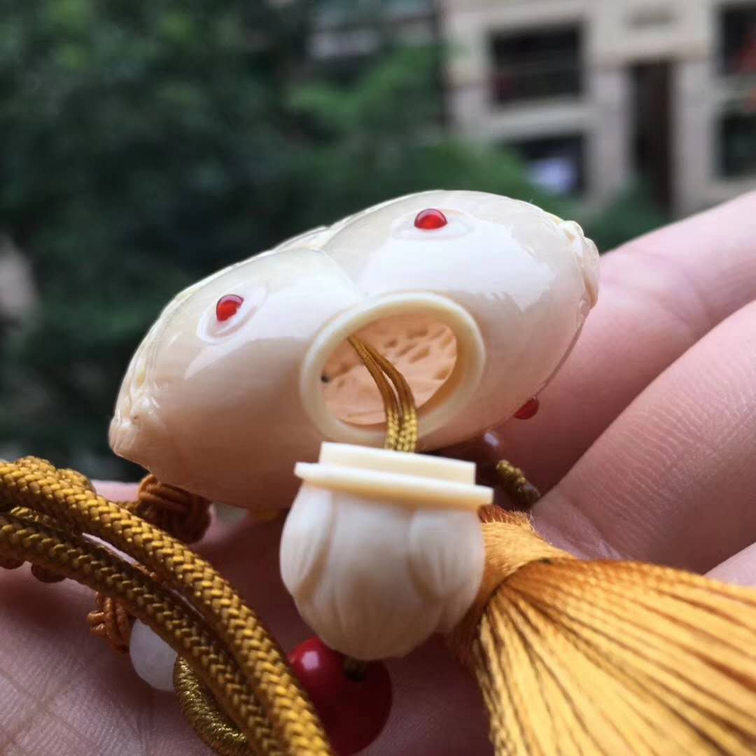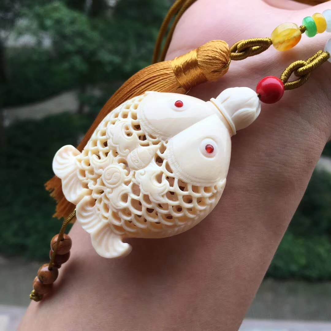 全新升級,雙魚福臨門一體香囊掛件,純手作造型美觀實用,內壁掏空容量超大。四周為網格式設計虛實結合,大氣簡約。整體色澤均勻,溫潤而細膩。40×56×18mm,約10g