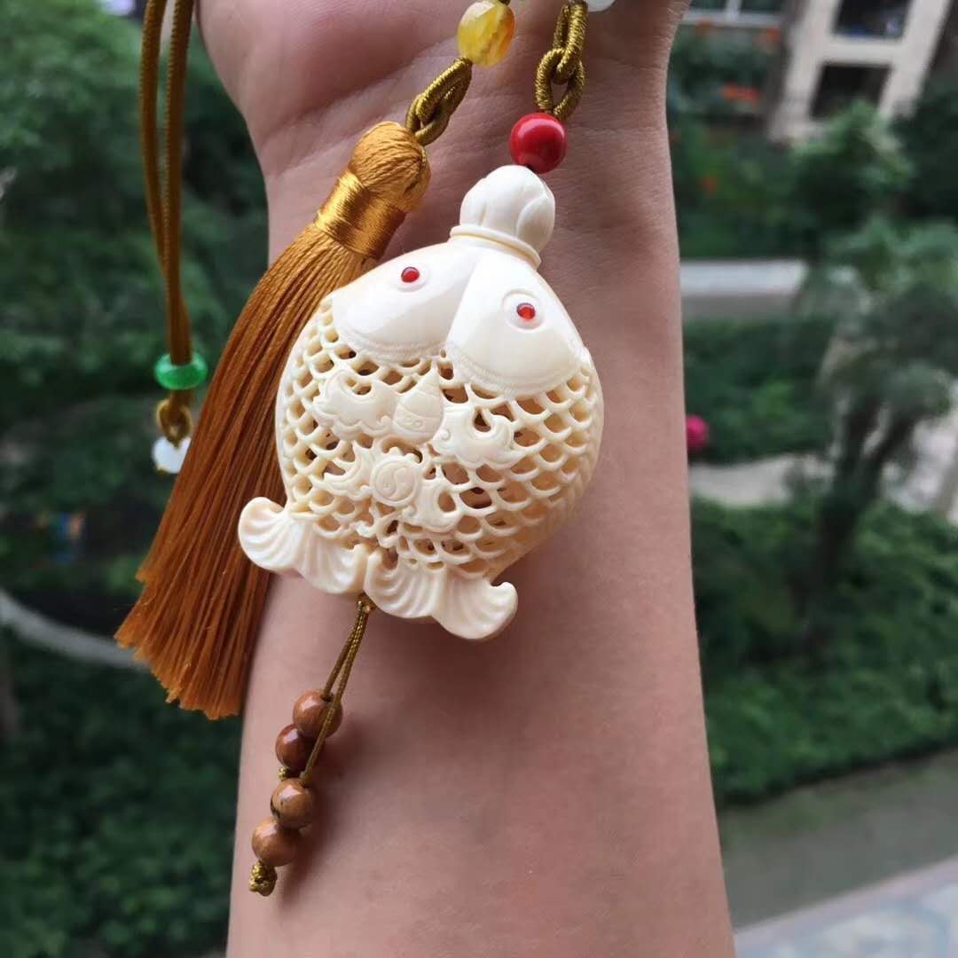 雙魚福臨門一體香囊掛件 四周為網格式設計虛實結合,大氣簡約。整體色澤均勻,溫潤而細膩