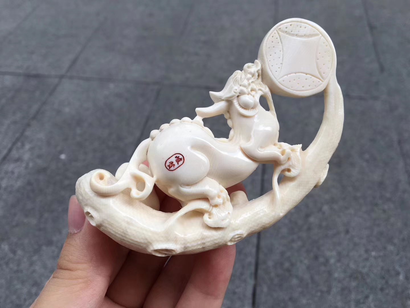 精工貔貅小擺【招財進寶】精選猛犸牙雕白冰料,牙質細膩潤澤,超鏤空雕刻