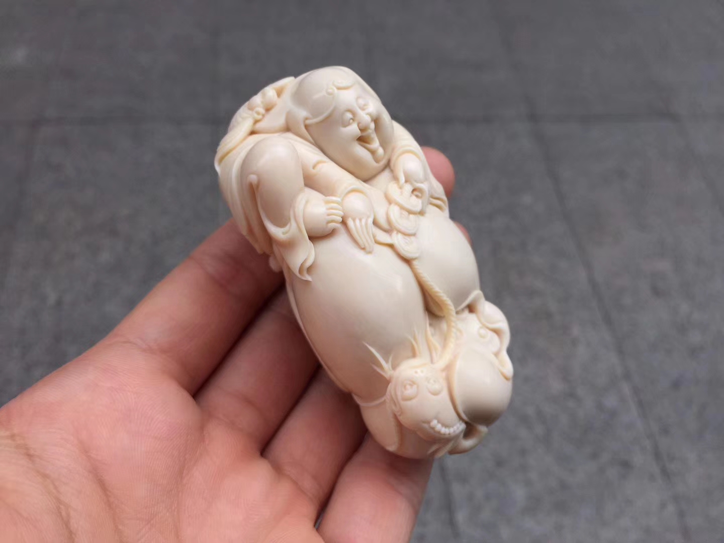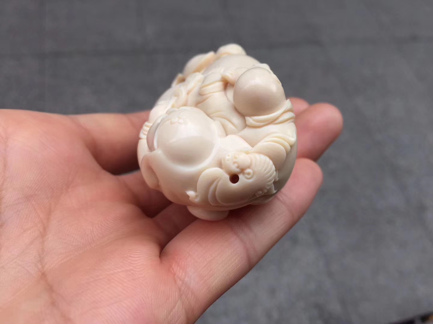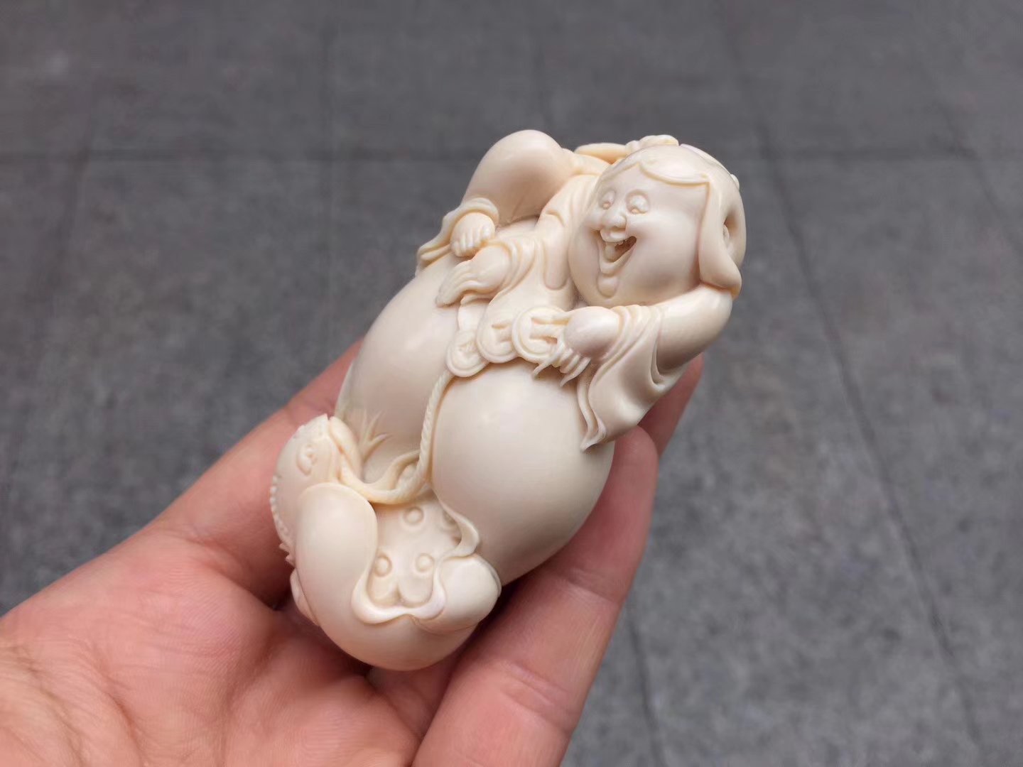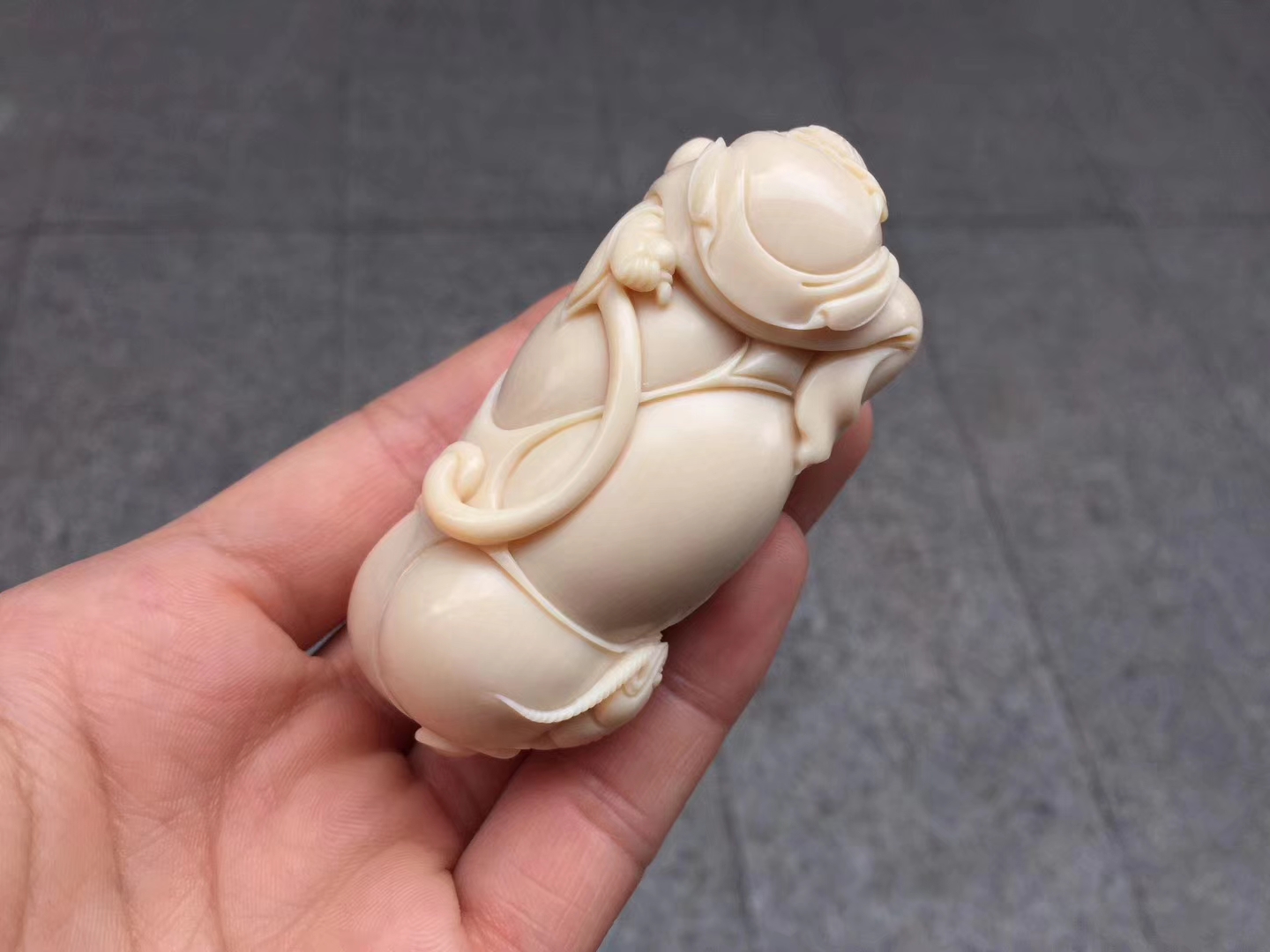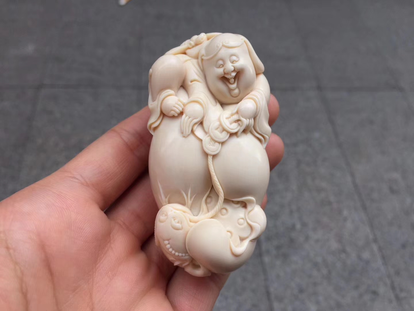 【劉海戲金蟾】小珍老師正版作品 ,工藝唯美,線條流暢飄逸自然,開臉喜慶樂呵,刀過之處,皆屬天成。材質油潤無瑕,完美緣品!落款“小珍”,贈收藏證書!尺寸75×36×31mm,重75克。