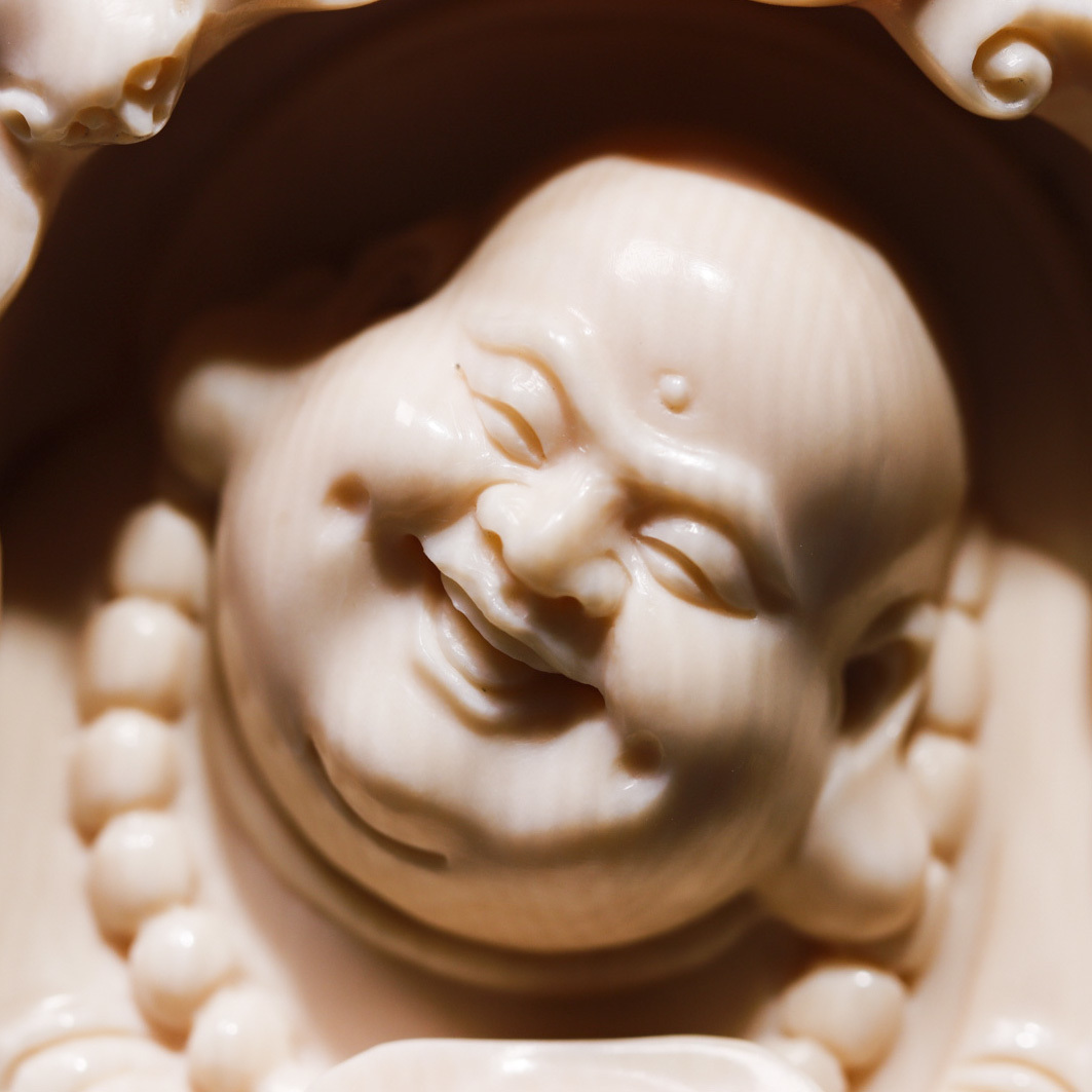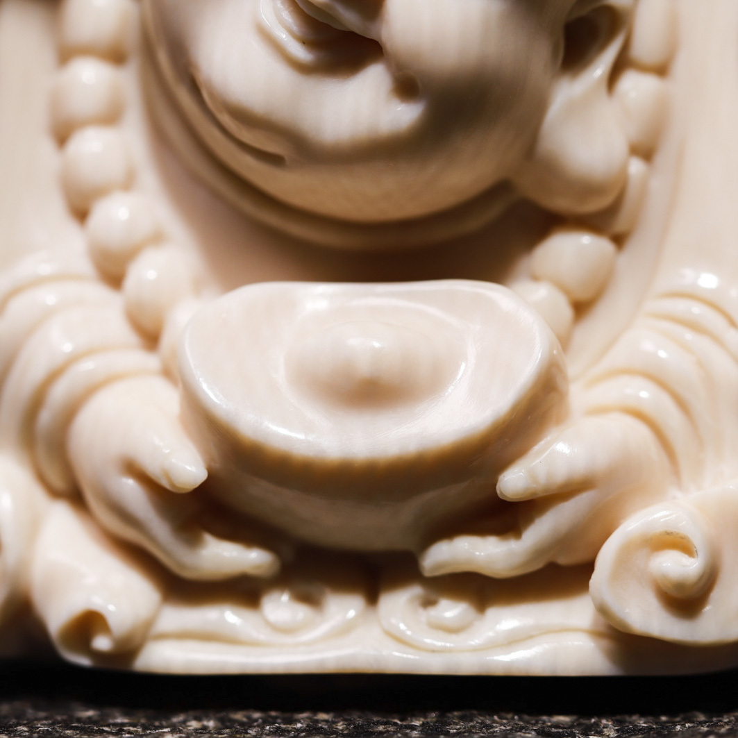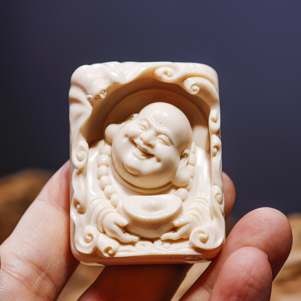 【元寶彌勒·福在眼前】悟仰堂志東大師手雕猛犸牙精品