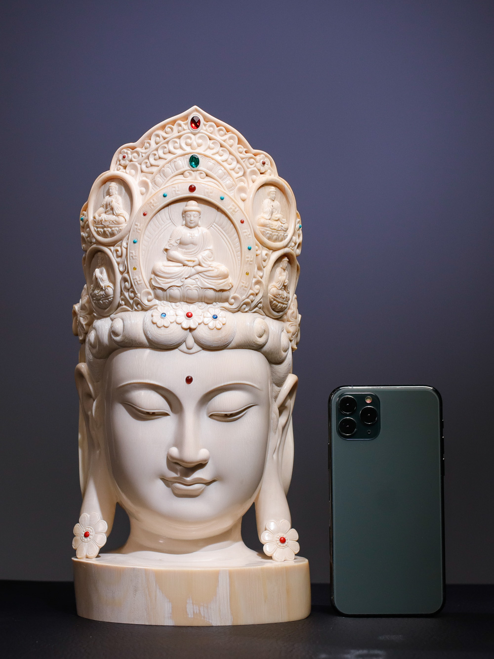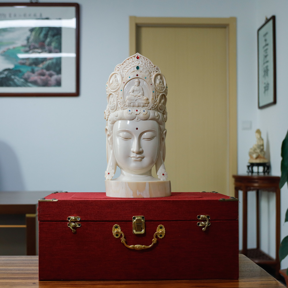 重器《觀音像》猛犸牙原牙擺件,海山大師耗時數月精雕力作